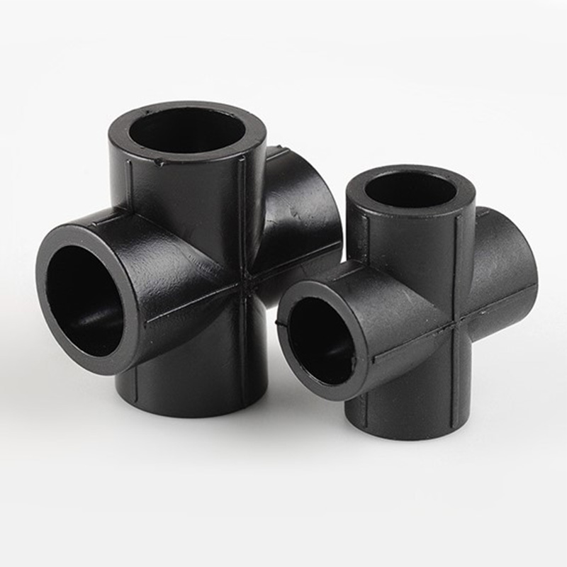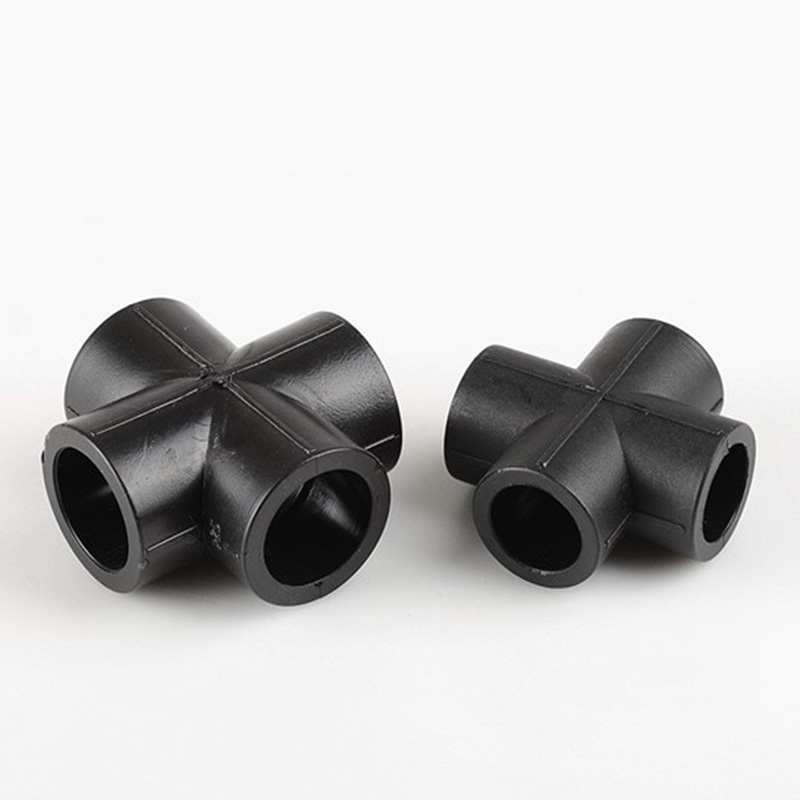 HDPE Butt Fusion Fusion równa o średnicy czterech rur o równej średnicy pod kątem 90 ° w konfiguracji „+”. Zapewnia zrównoważony przepływ przy jednoczesnym zachowaniu stałej średnicy wewnętrznej i ciśnienia systemu. Idealny do pionowych rurociągów, równomiernie rozkłada przepływ płynu lub gazu.