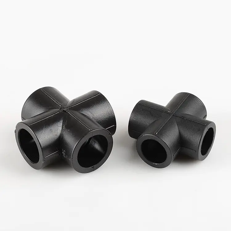 Złączki krzyżowe HDPE o równej średnicy to czterokierunkowe łączniki rurowe HDPE. Ta precyzyjnie wykonana złączka krzyżowa z polietylenu przeznaczona jest do łączenia czterech rur o jednakowej średnicy w układzie „+”. Przecina jednocześnie cztery rury w pionie pod kątem 90 stopni, tworząc zrównoważony punkt dystrybucji w systemie rur HDPE, zapewniając stałą średnicę wewnętrzną i rozkład ciśnienia. Stosowany jest przede wszystkim do równomiernego rozprowadzania przepływu cieczy lub gazu wzdłuż pionowych rur. Wykonana z PE100 złączka jest bardzo trwała, odporna chemicznie i wszechstronna, kompatybilna zarówno z metodami połączeń doczołowych, jak i elektrooporowych. Od sieci dystrybucji wody po systemy wtrysku, złączki HDPE Equal Cross działają niezawodnie w wymagających warunkach terenowych.